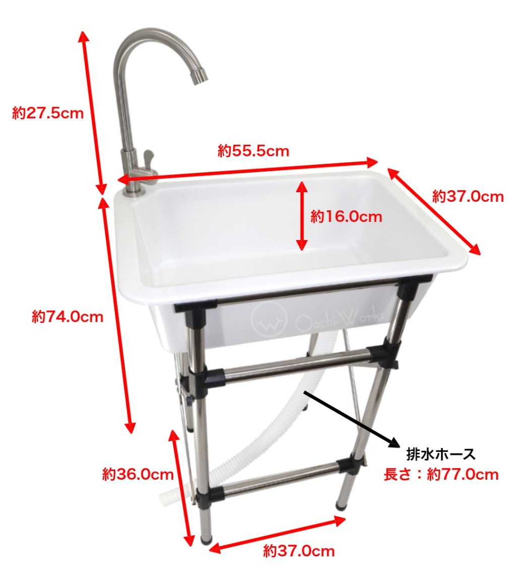 プラスチック流し台 折りたたみ式 水洗付き W555×D370×H740mm 改良型 ガーデンシンク 屋外用流し台