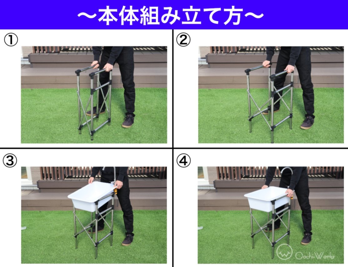 ・脚部が折りたたみ式のため設置、収納が簡単なコンパクト流し台