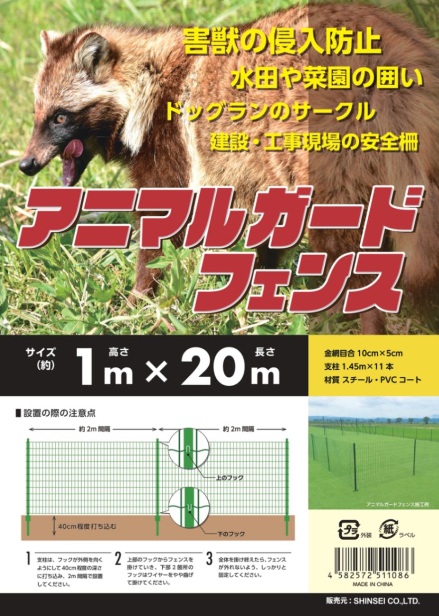 【商品名】アニマルフェンス 1m×20m 支柱11本セット