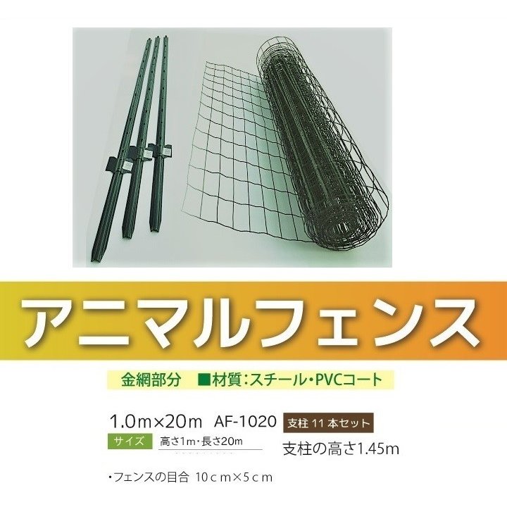 アニマルフェンス グリーン 1.0m×20m 個人様配送可能 支柱1.45m 11本付 侵入防止用フェンス 防獣フェンス 法人様送料無料