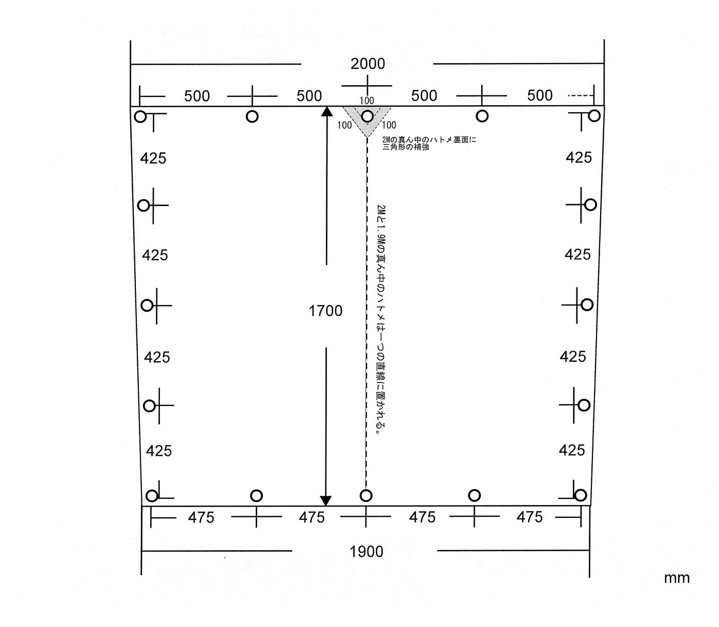 【ハトメ】真鍮ハトメ 前中央ハトメ部分補強加工