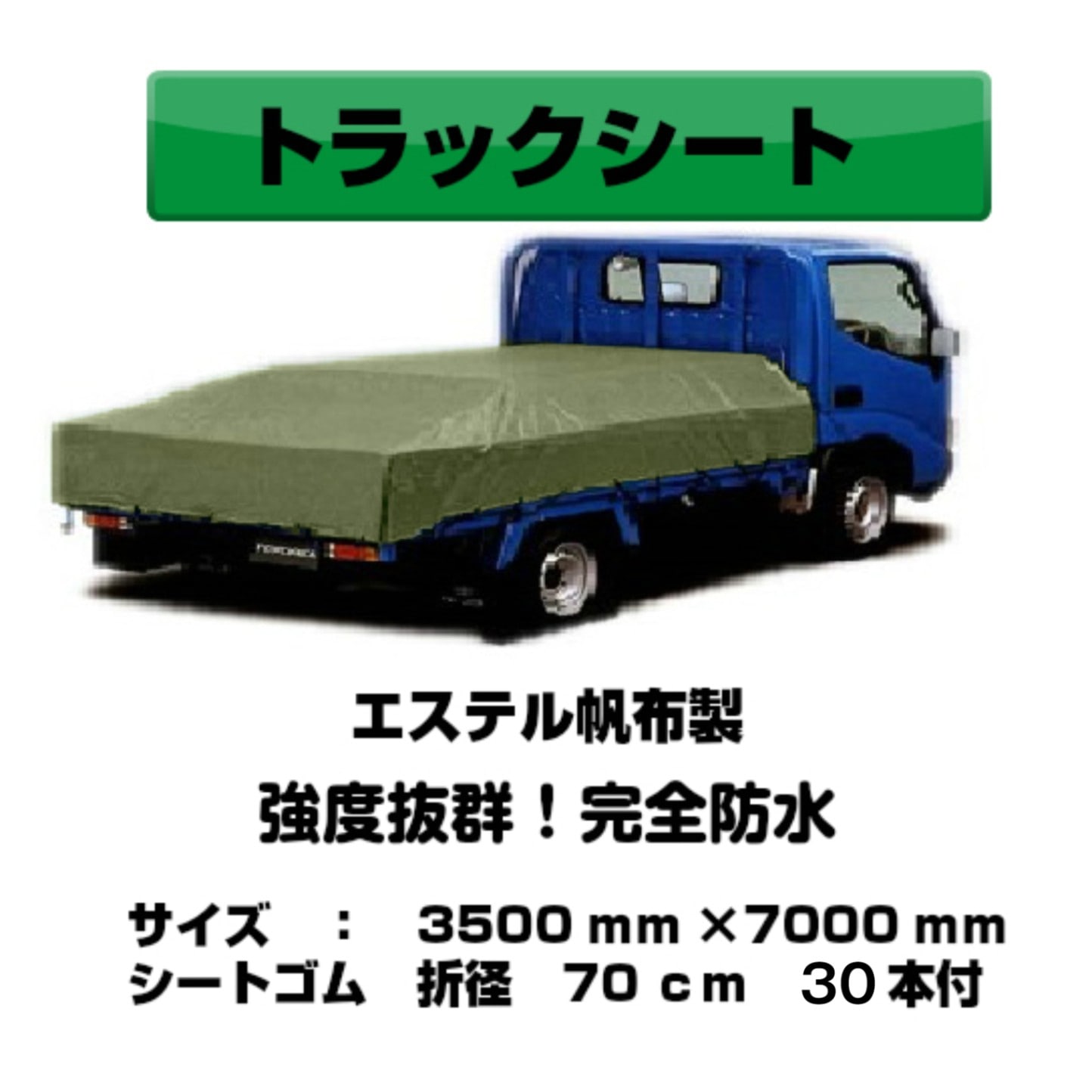 トラックシート 4t用 OD 国防色 3.5m×7.0m ゴムバンド30本付 エステル帆布製 荷台シート 荷台カバー 大型用