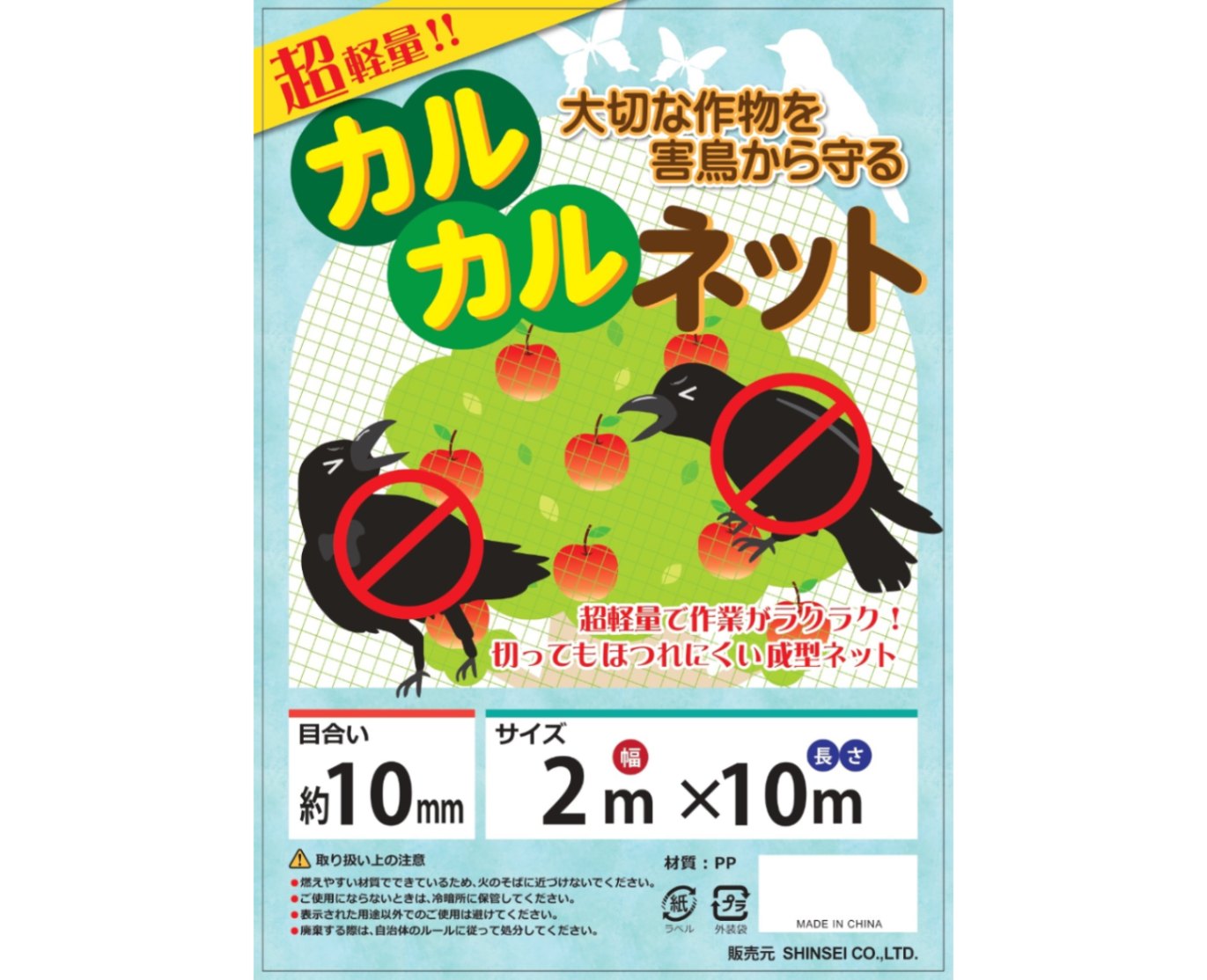 カルカルネット 2m×10m 超軽量ネット グリーンネット 鳥よけネット 防鳥ネット