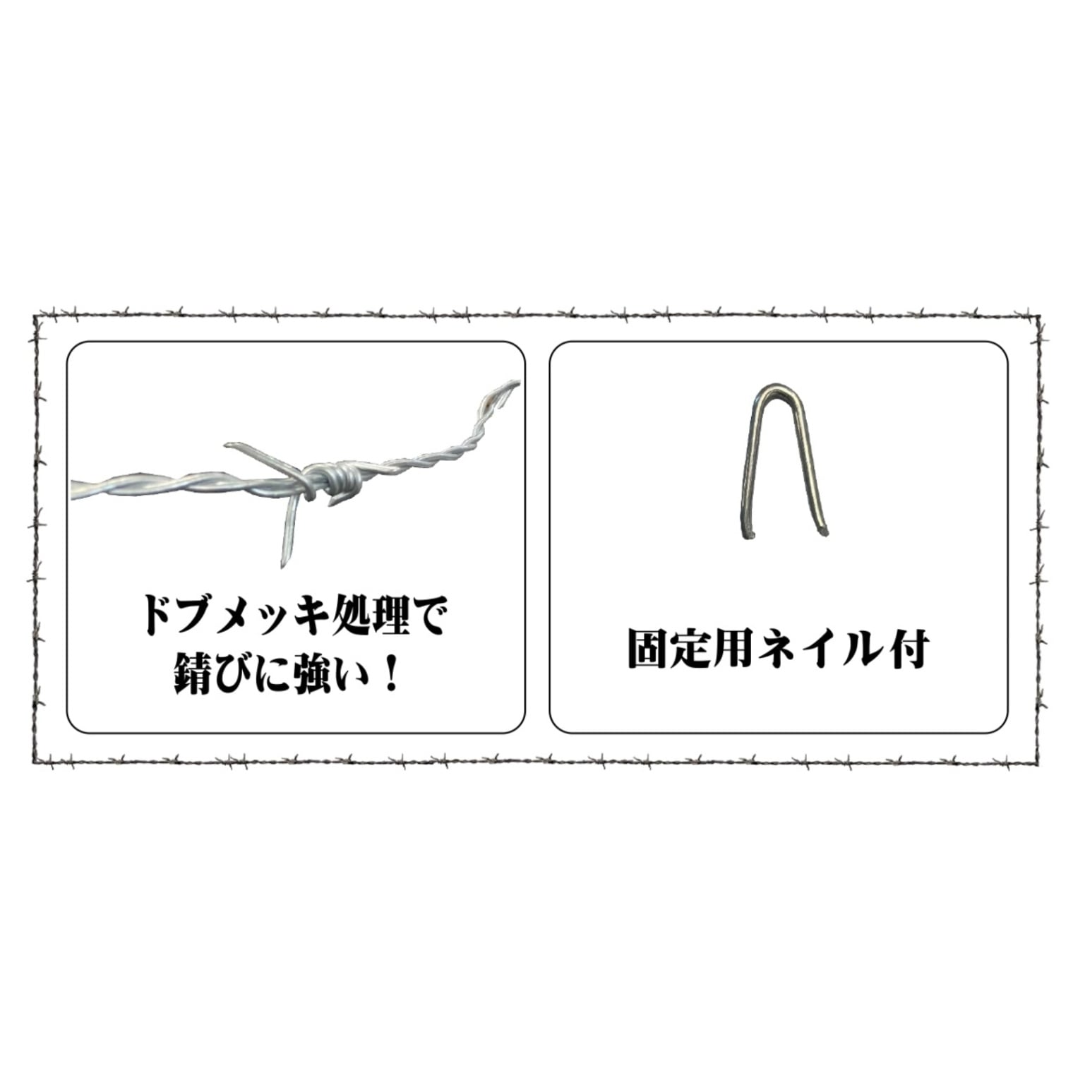 有刺鉄線 #16×20M 4巻セット (80M) 亜鉛メッキ 固定用ネイル付