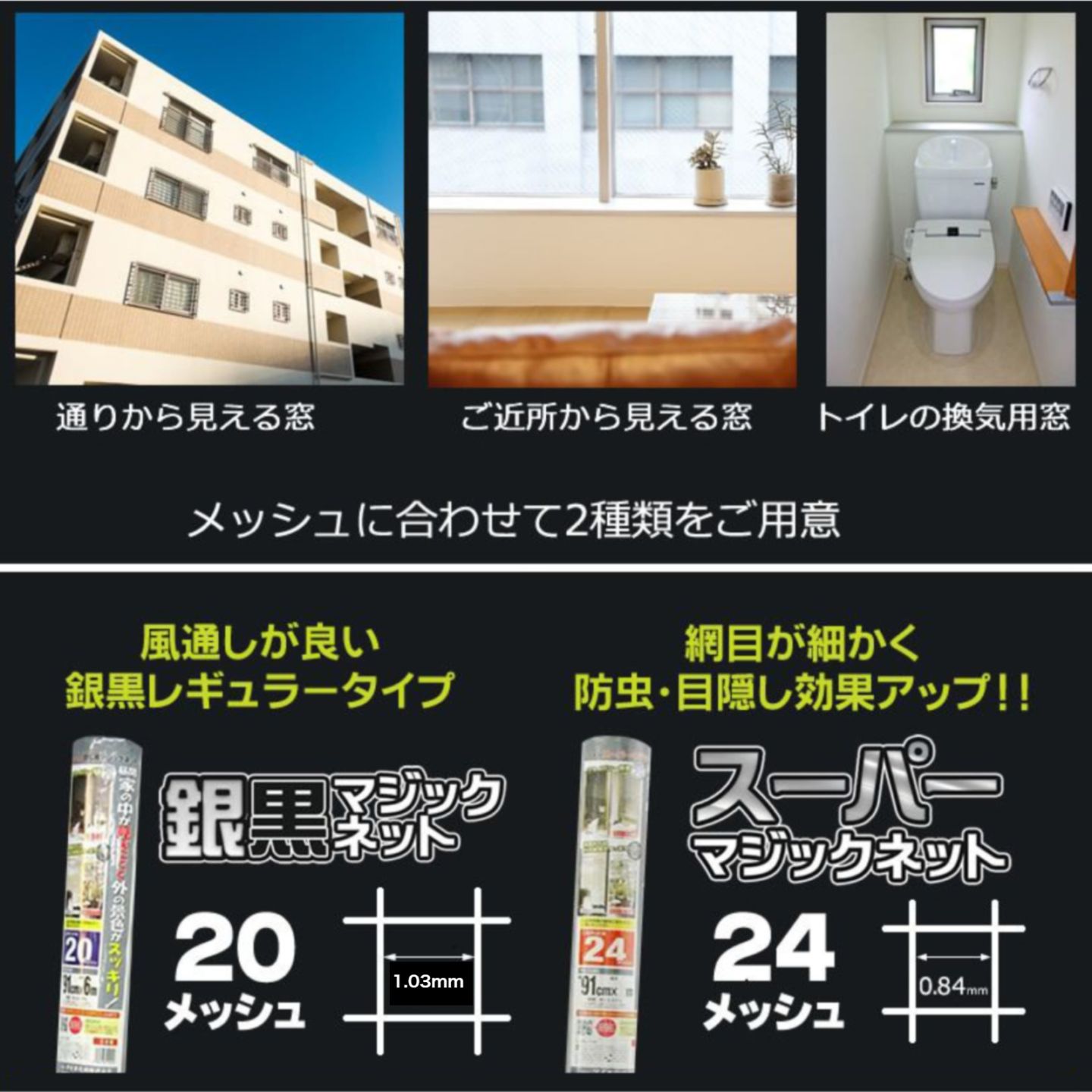 目かくし防虫ネット #20 145cmx30m 銀/黒 網戸用 銀黒マジックネット