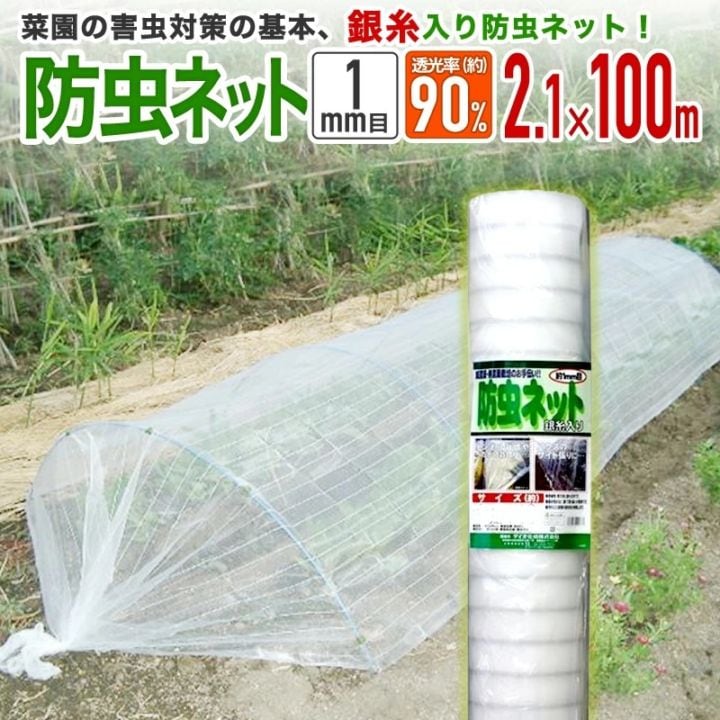 銀糸入り防虫ネット 2.1m×100m 1mm目 透光率90% 防虫網